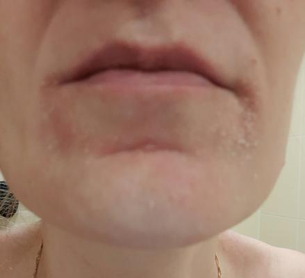 На фото кусочек "красивого" лица,с которого сшелушивается кожа. Качество фото могло быть лучше,но все же.