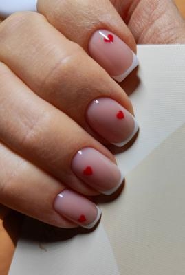 - наращивание ногтей + долговременное покрытие френч: