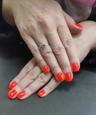 - наращивание ногтей + долговременное однотонное покрытие: