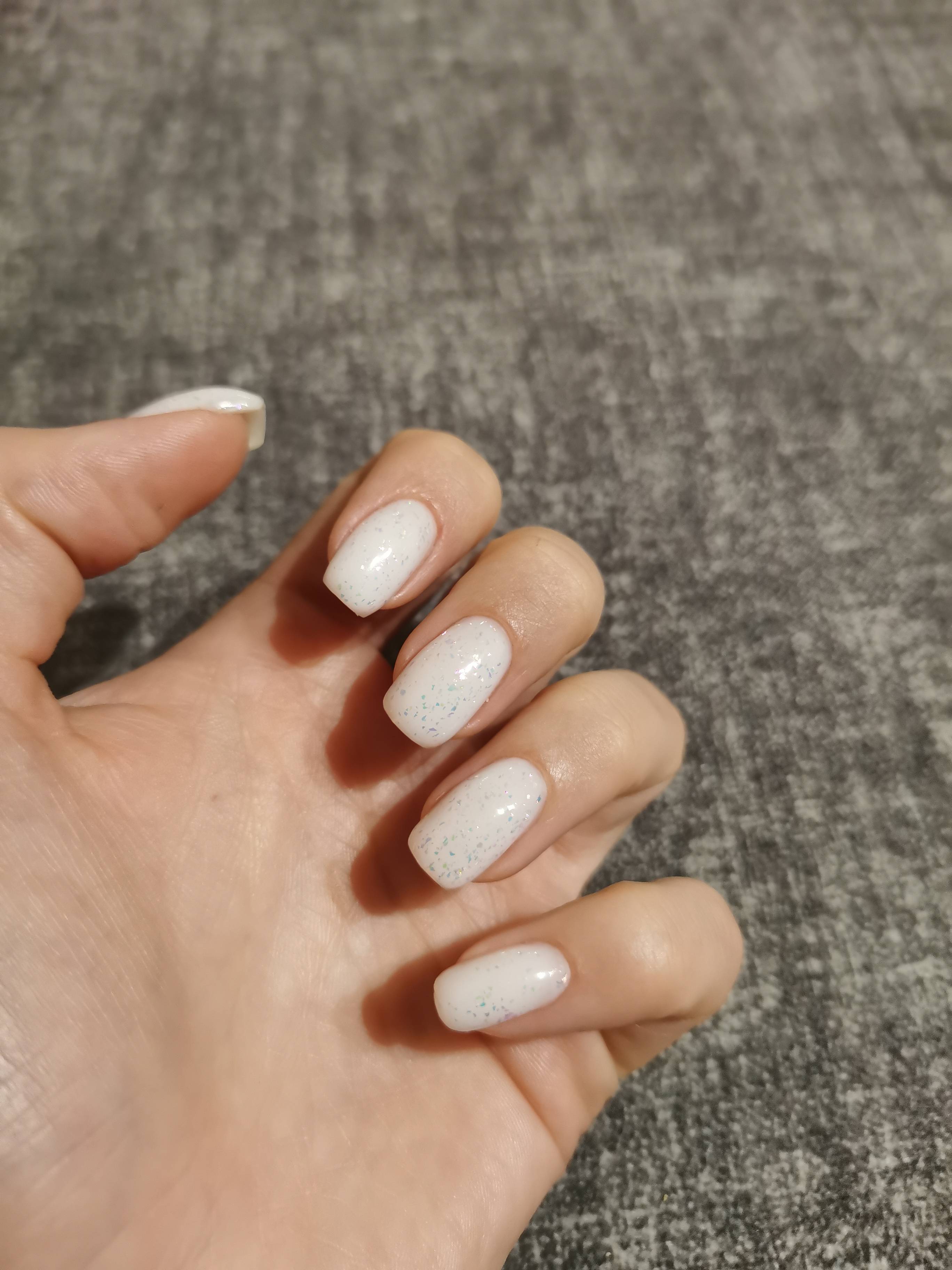 Жемчужный блеск сохраняется до 14 дней, а полезный состав в ногтевой пластине остается и накапливается. А на ощупь ногтевая пластина как стекло.
