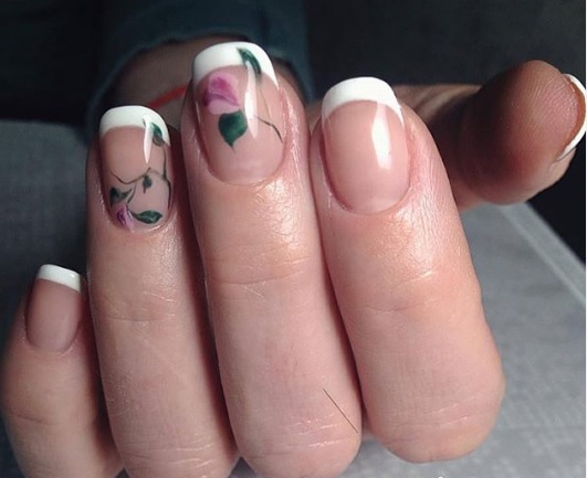Пример нашей работы. Французский маникюр + дизайн кисточкой