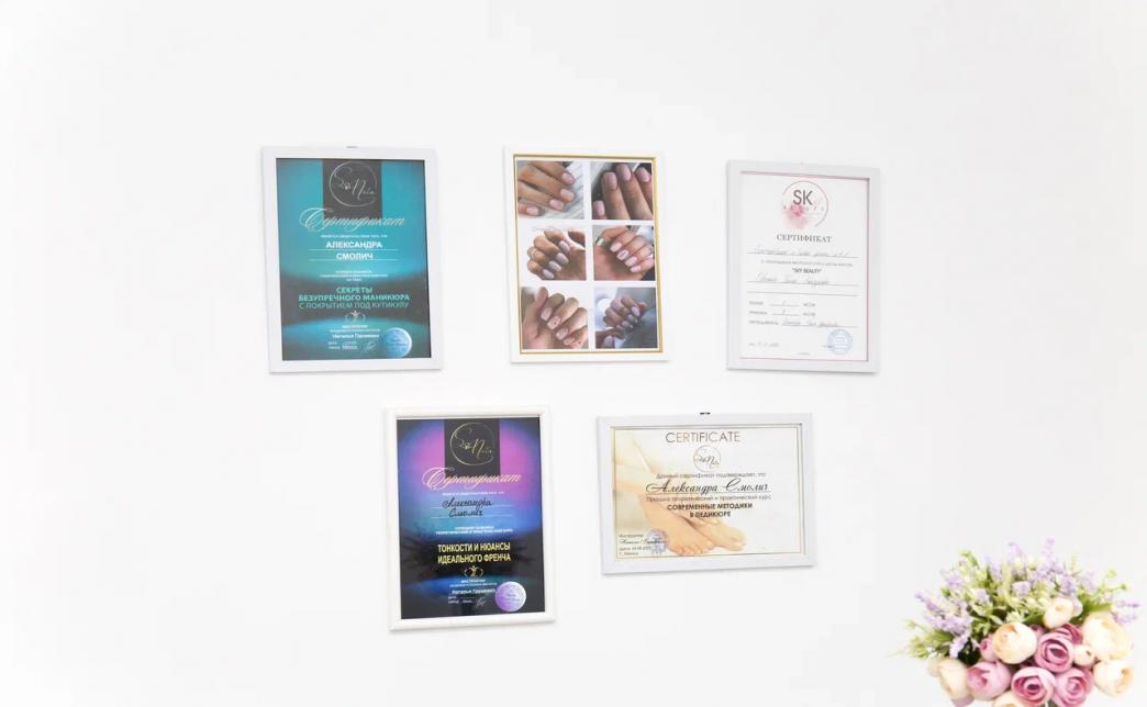 - Работа в студии выполняется материалами премиум класса: гель-лаки "Diva", "Milk", "Grape"