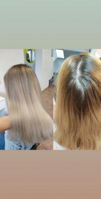 - "Стрижка + супервосстанавливающая маска с кератином + сушка по форме" и "Полировка волос":