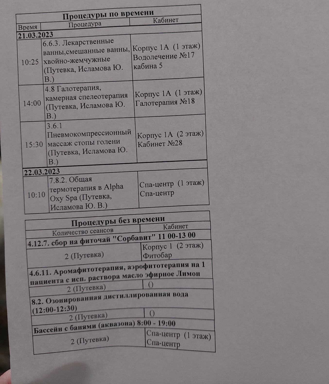 - Перечень оздоровительных процедур смотрите ниже