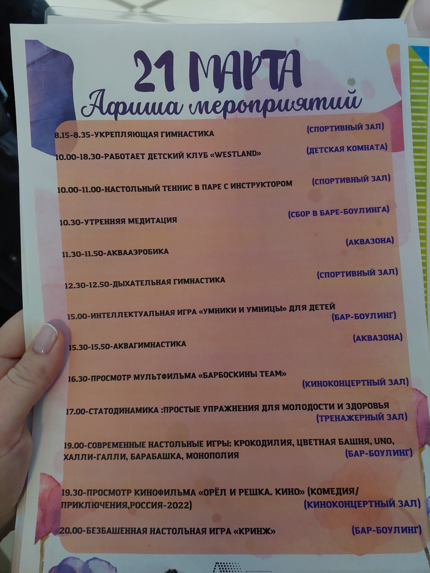 - мероприятия (мастер-классы, кинопросмотры, караоке, дискотеки и многое другое)