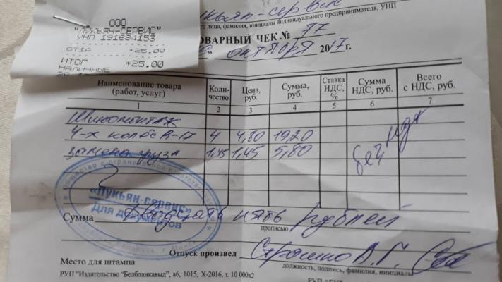 - монтаж шины с помощью Бустера, либо другими спец. средствами (при необходимости): 2,50 р/колесо