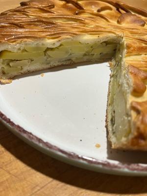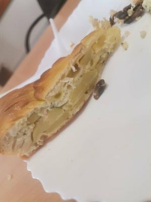 - пирог "С картофелем и сайрой" (1200 г): дрожжевое тесто, тесто картофель, консерва рыбная , лук маринованный, соль, перец