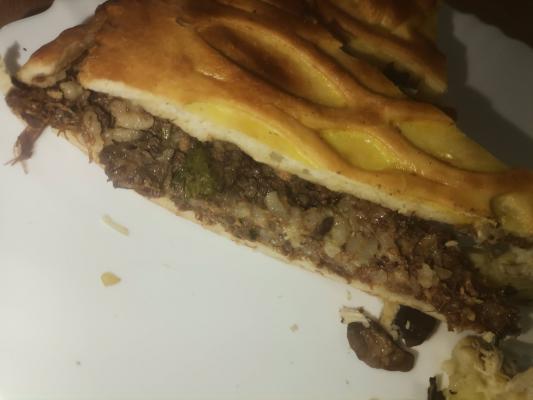 - пирог "С говядиной и рисом" (1200 г): дрожжевое тесто, говядина, рис, морковь, лук, черный перец, соль