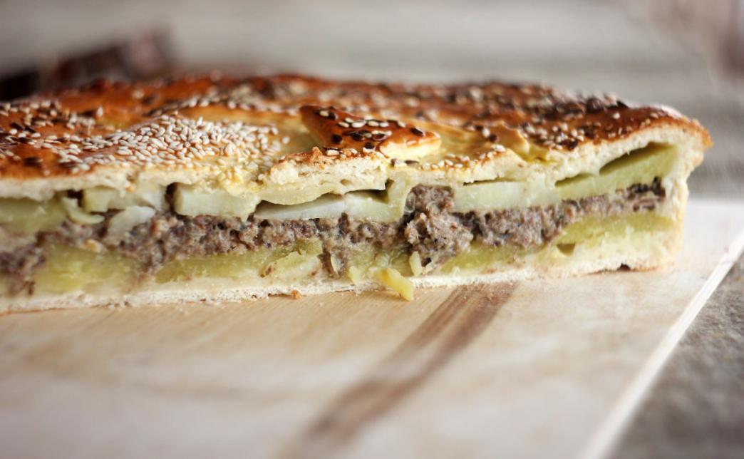 - пирог "С картофелем и говядиной" (1200 г): дрожжевое тесто, картофель, говядина, морковь, лук, соль, чеснок, черный перец