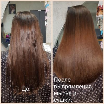 Можно красить волосы в один день с процедурой выпрямления, но окраска должна быть первой.