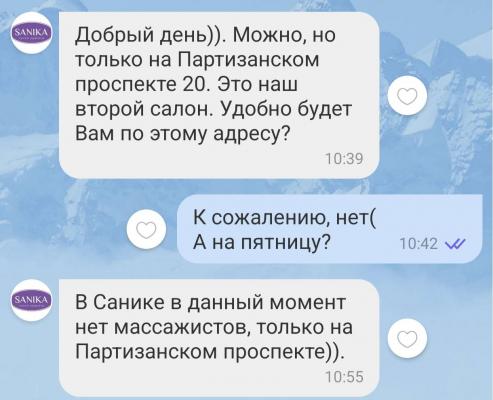 В акции и на странице салона в Instagtam, нигде не указано, что массаж происходит по-другому адресу: пр. Партизанский.