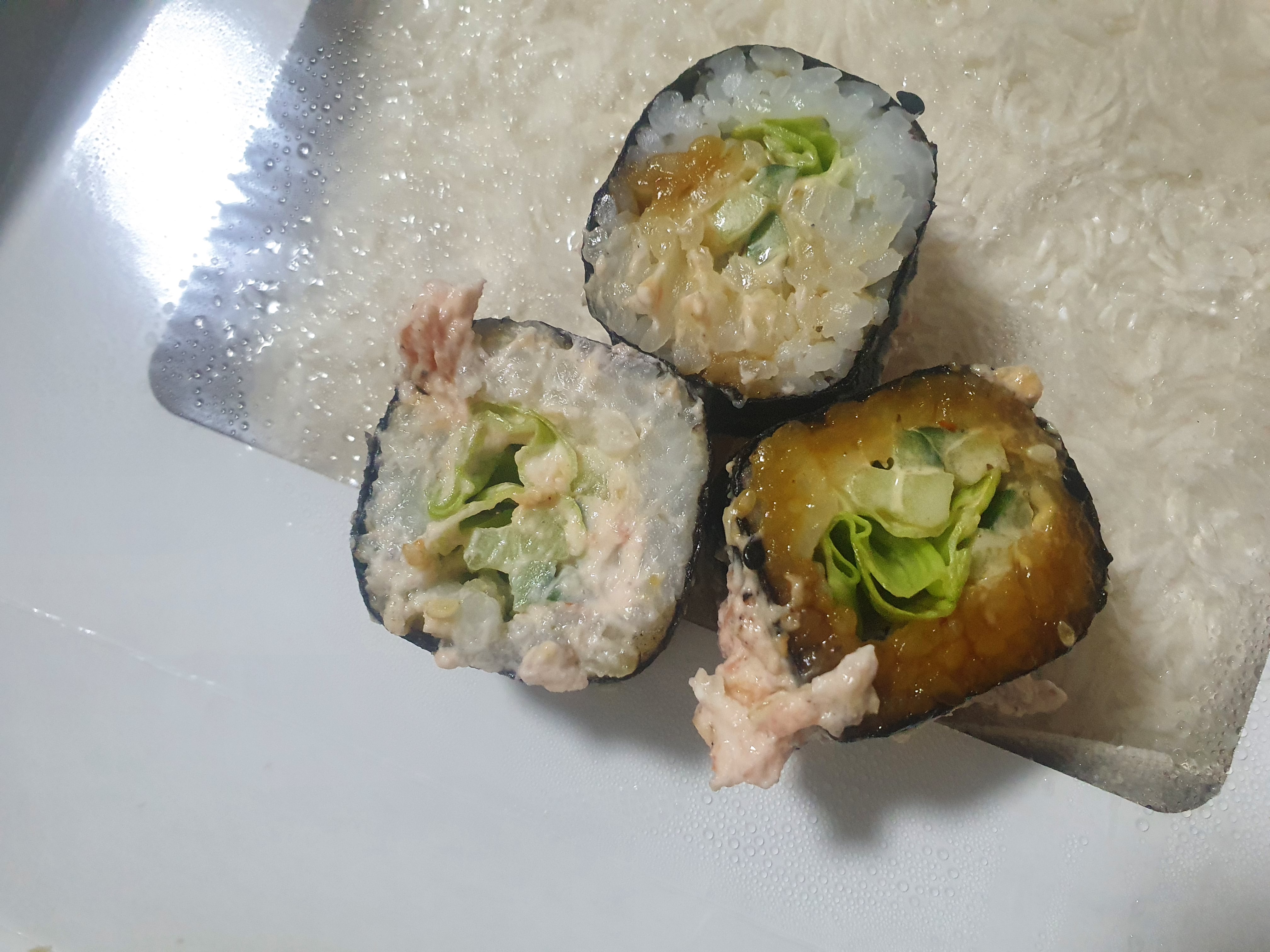 - "Спайси краб 🌶": сурими, сливочный сыр, ананас, салат Айсберг, соус Терияки, острый соус - 8 шт.