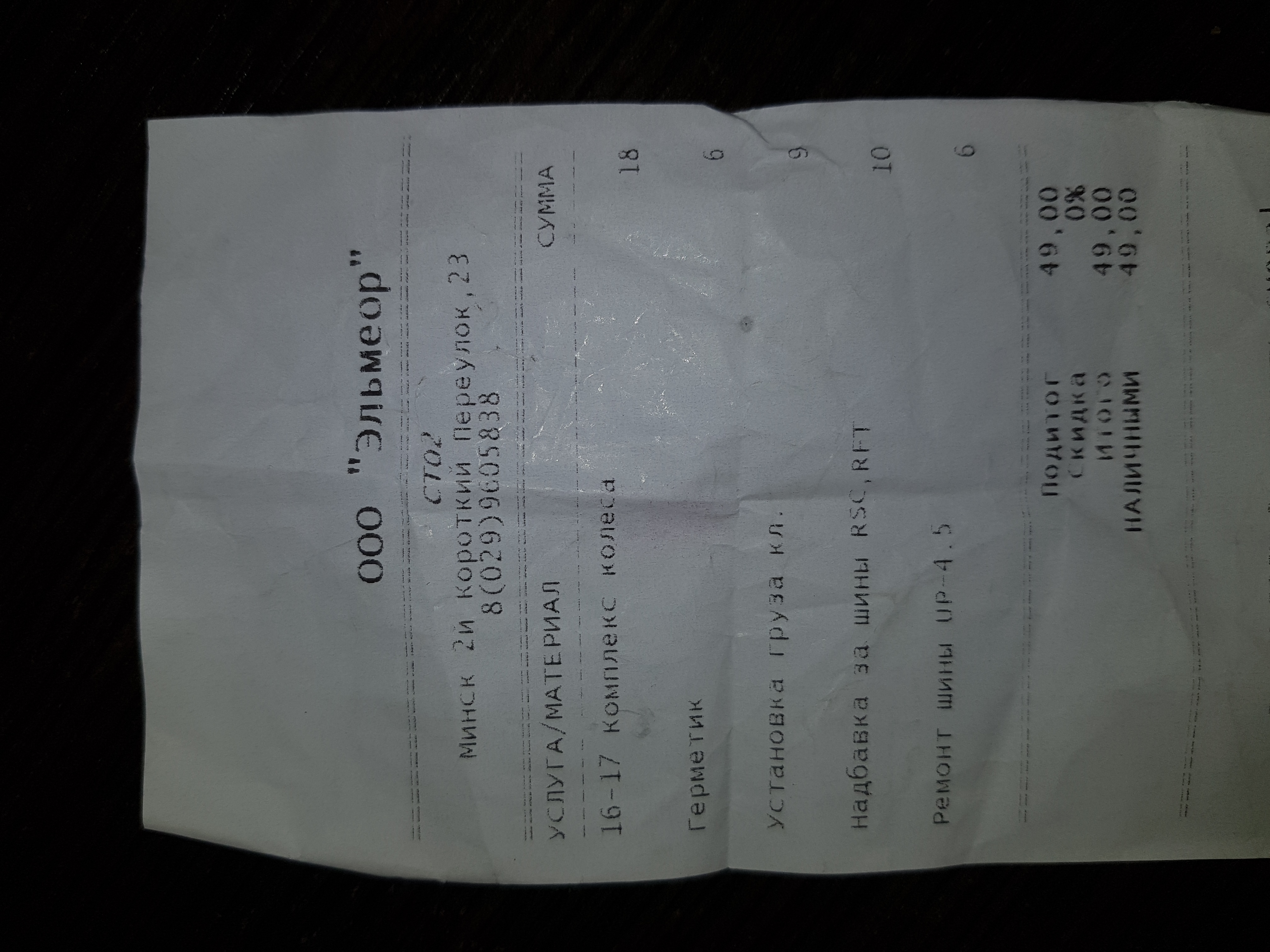 - Промокод дает право на скидку 50% на ремонт проколов, балансировку
