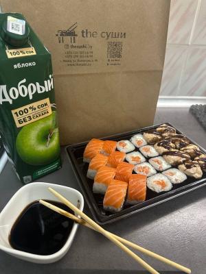 - Промокод дает право на скидку до 58% на суши-сеты от "THE СУШИ"